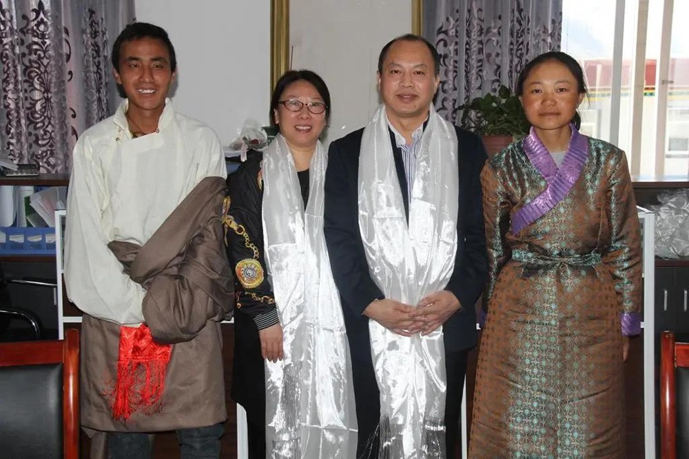 接受西藏大學生獻哈達
